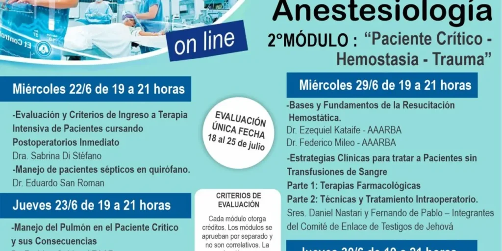 Si bien la estructura exacta puede variar según la institución, un programa típico de Anestesiología podría incluir los siguientes módulos: