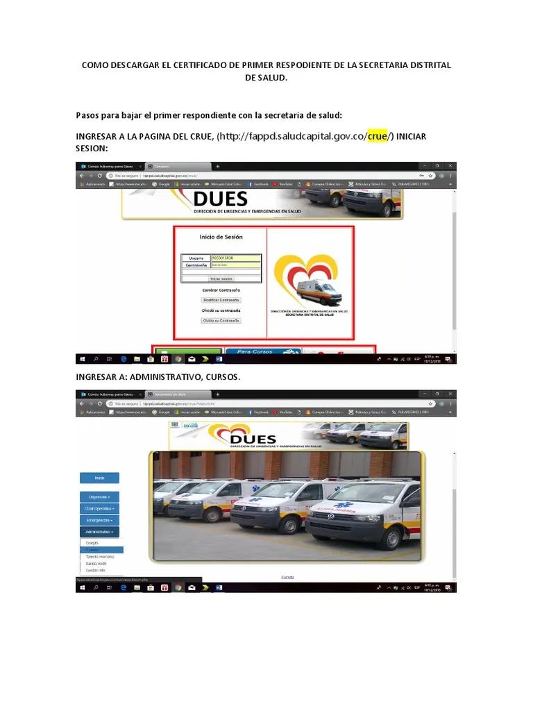 Luego de obtener la certificación de la primera etapa, el participante debe acceder a un sistema de información específico para registrarse y seleccionar el curso de primer respondiente. Este paso suele implicar diligenciar un formulario y seleccionar la fecha del curso presencial o virtual. Una vez completado el proceso, se puede descargar el certificado oficial de la Secretaría Distrital de Salud.