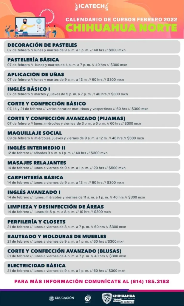 Nota : La duración, requisitos y costos de los cursos ICATECH pueden variar. Es fundamental verificar la información en la página web oficial del ICATECH.