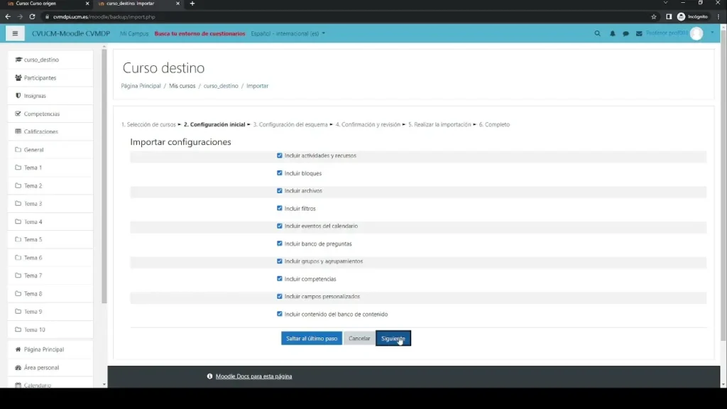 - Considere la compatibilidad: Asegúrese de que las actividades y recursos del curso origen sean compatibles con la versión de Moodle del curso destino.