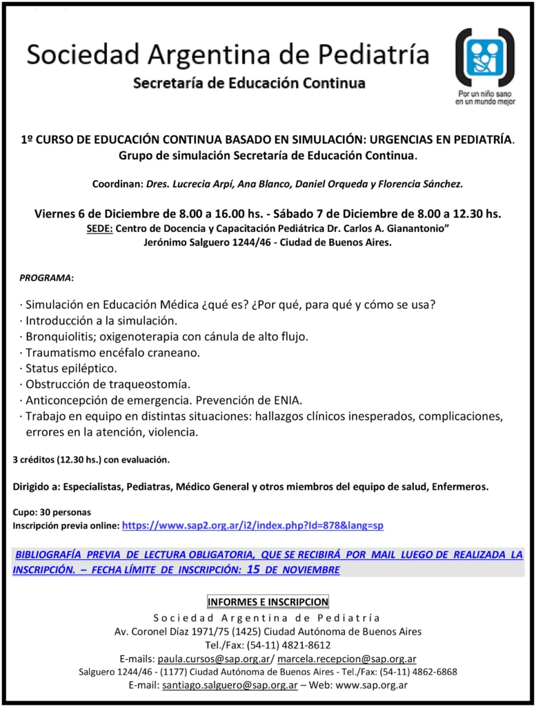 Es importante consultar regularmente la página web oficial de la Sociedad Argentina de Pediatría para mantenerse informado sobre las próximas capacitaciones y oportunidades de formación. La inversión en la capacitación médica continua es una inversión en la salud de la población infantil del país.