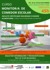 Curso para comedores escolares para monitores y personal
